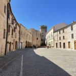 Partiamo dal centro di Monterubbiano, dalla piazza della collegiata di Santa Maria dei Letterati, uscendo dalle mura del paese attraverso Porta San Basso.
